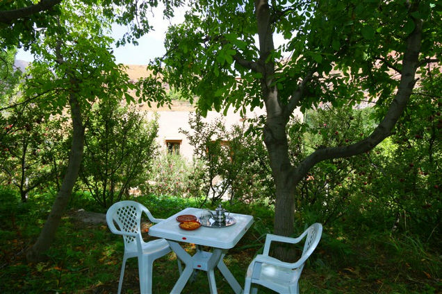 Family owner and run, our cosy Atlas Mountain retreat offers a true escape from the hustle and bustle of the city, with all the modern comforts and added charm of traditional Moroccan hospitality. Guest house Atlas Imoula features cosy and neat accommodation in 6 beautiful and colourful Berber-style guestrooms with private bathrooms. There are 4 standard double rooms and our other rooms can accommodate families are larger groups of travellers. Our other facilitates include free wifi, large dining room with a fire place, a roof terrace with panoramic views over Imlil Valley, several patios and a salon where you can take your aperitif, check your emails, or have a game of cards. Behind the building is a beautiful garden with apple, cherry and walnut trees. If you whish you can have your meals there too and enjoy the nature.