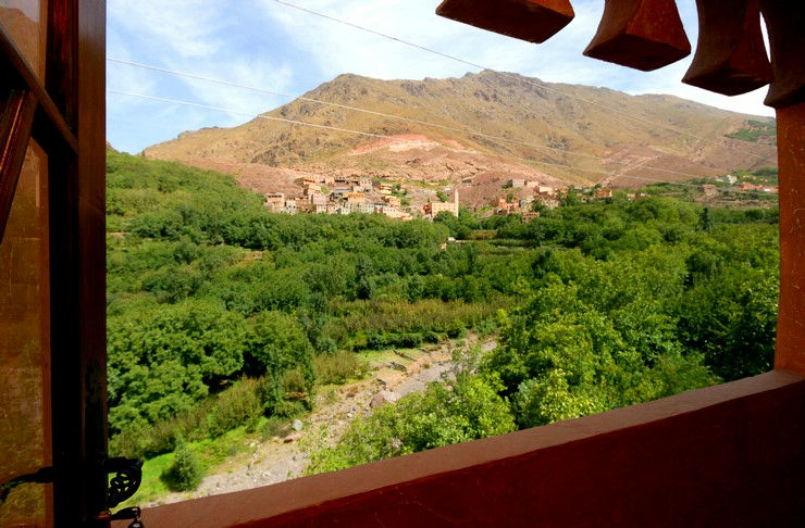 - - Windows with a panoramic view over the atlas mountains and berber village of ait souka.